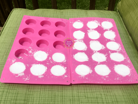 - Using your spoon, push the mixture into the silicone tray to compact into the bombs.